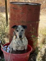 Dog in water bowl
